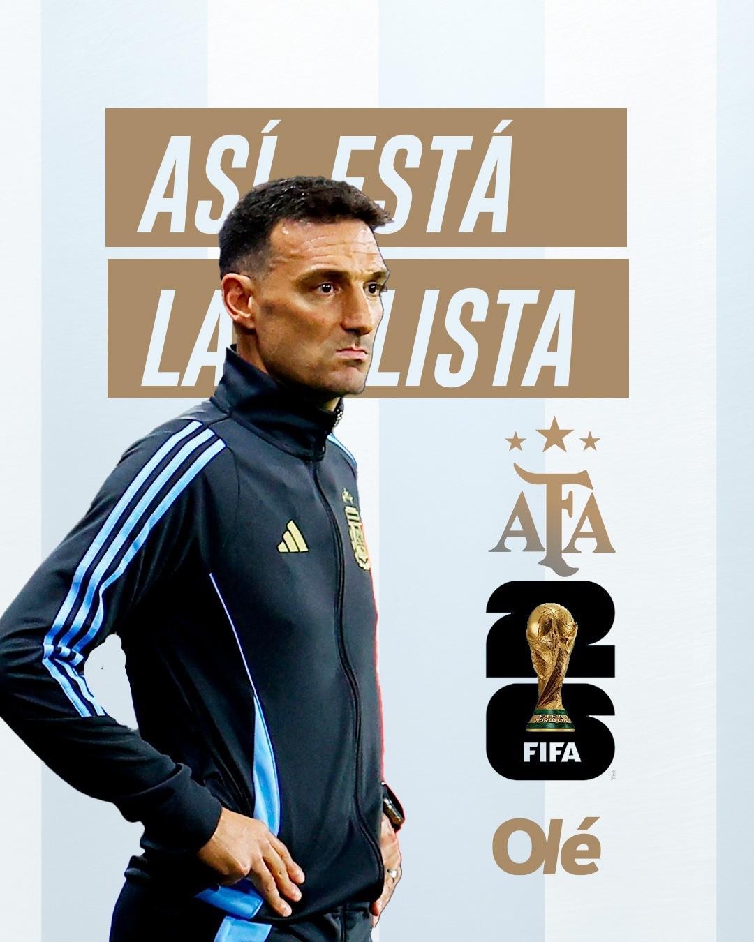 北京时间9月11日,在阿根廷以世预赛南美区第一名的成绩挺进2026年美加墨世界杯决赛圈之后,阿根廷的《奥莱报》对潘帕斯雄鹰明年世界杯的参赛阵容进行了分析。